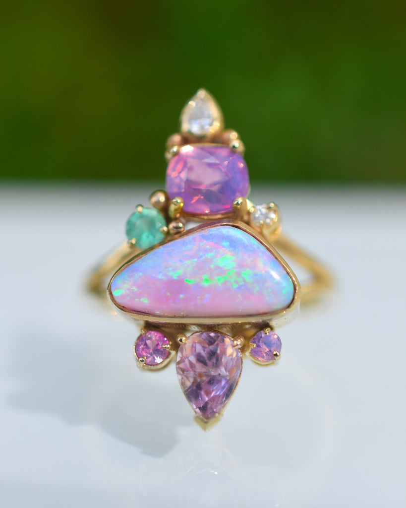 I don’t even know where to start. I’ve been eyeing all her pieces for 4 years. And I finally purchased this beautiful ring. It’s by far the most perfect ring I’ve ever seen. The details are so phenomenal. And the opal is so bright and colorful. You can definitely see how much love and hard work goes into every piece. Thank you so so much!