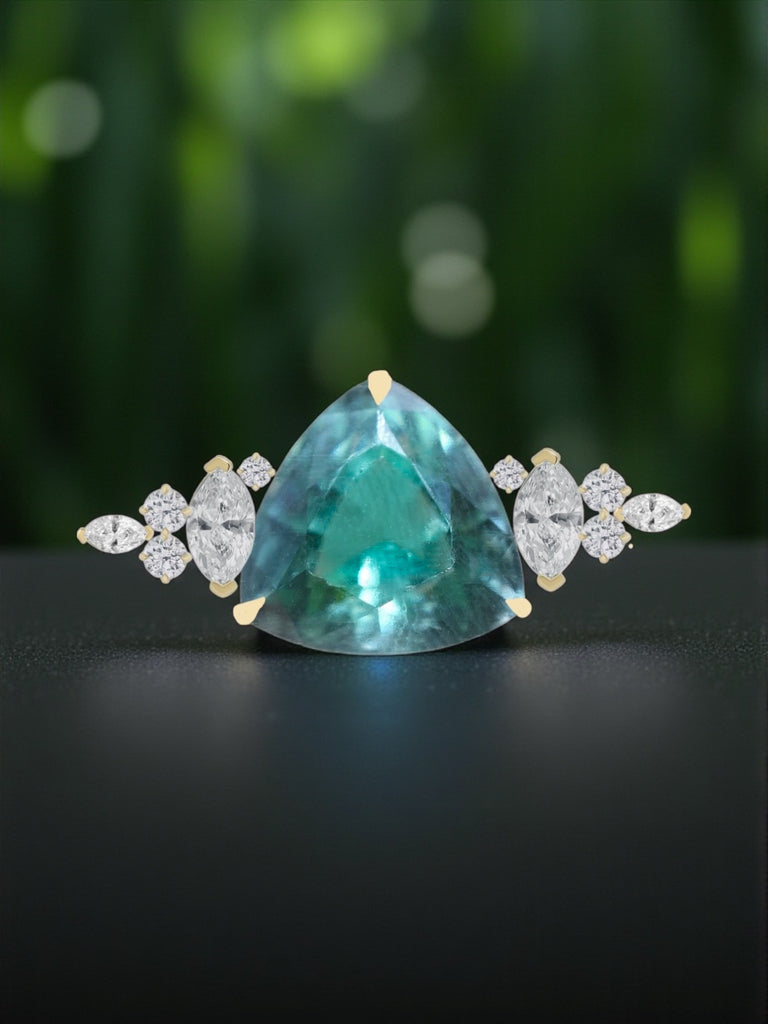 (Made to Order) Stunning Deep Mint Tourmaline for Bridal Ring or set, or pendant with Diamonds in 14k Gold, two options