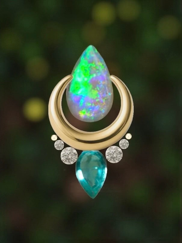 My handmade Angel Alchemy pieces are made for long-term wear, using solid Australian Opals which I custom cut for my one-of-a-kind designs as well as solid 14k gold and natural fine gemstones. Unlike many other opals, Australian Opals are non-porous, so they remain undamaged in wet conditions and maintain their hue and luster over time, making them an ideal choice for heirloom jewelry.