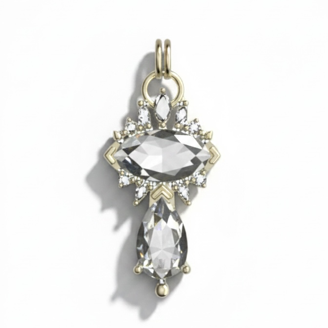 With Diamond and Cornflower Sapphire in 14k yellow gold