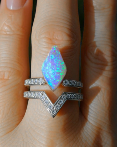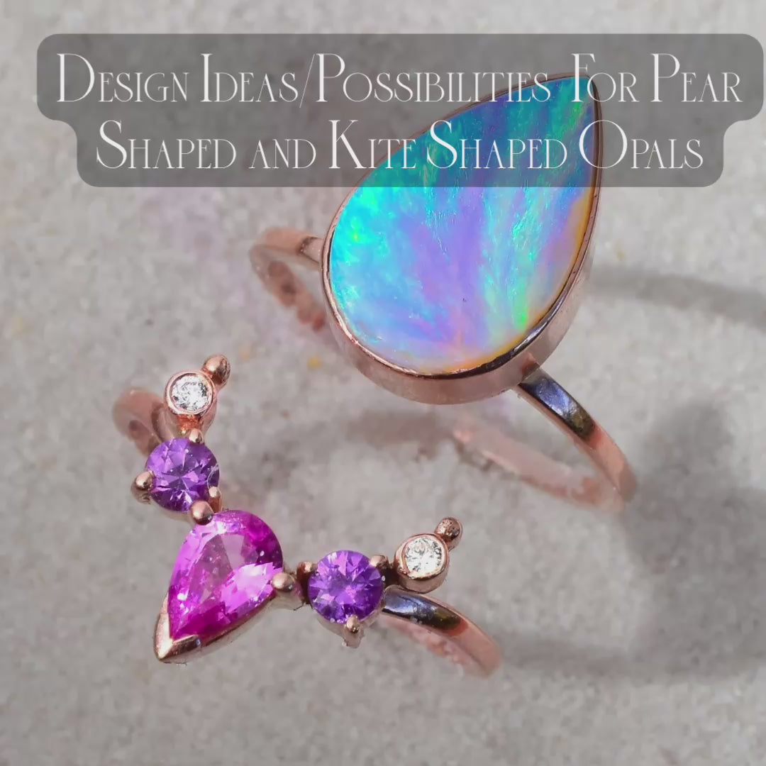 (Made to Order) Lightning Ridge Australian Opal Purple/Blue Diamond Shaped Opal for Moonflower or Lotus Bud Ring or Pendant in 14k Yellow White or Rose Gold