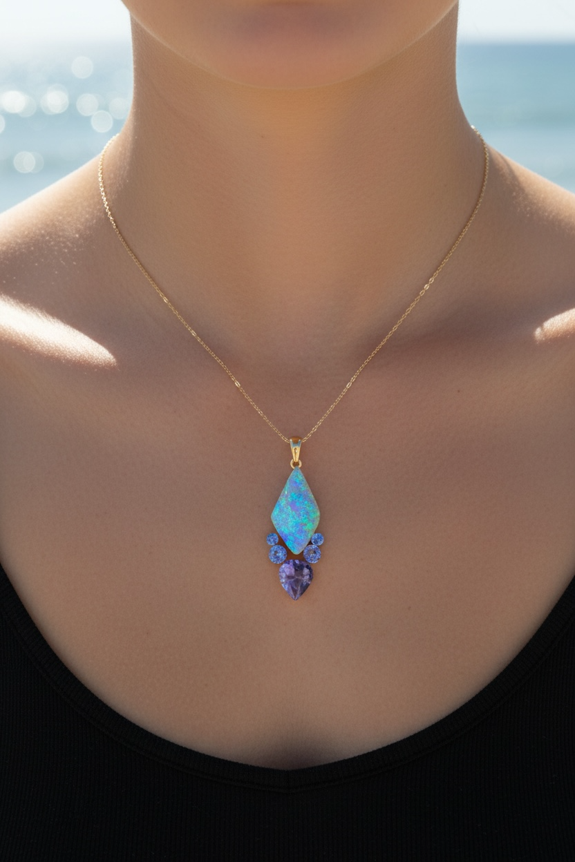 My handmade Angel Alchemy pieces are made for long-term wear, using solid Australian Opals which I custom cut for my one-of-a-kind designs as well as solid 14k gold and natural fine gemstones. Unlike many other opals, Australian Opals are non-porous, so they remain undamaged in wet conditions and maintain their hue and luster over time, making them an ideal choice for heirloom jewelry.