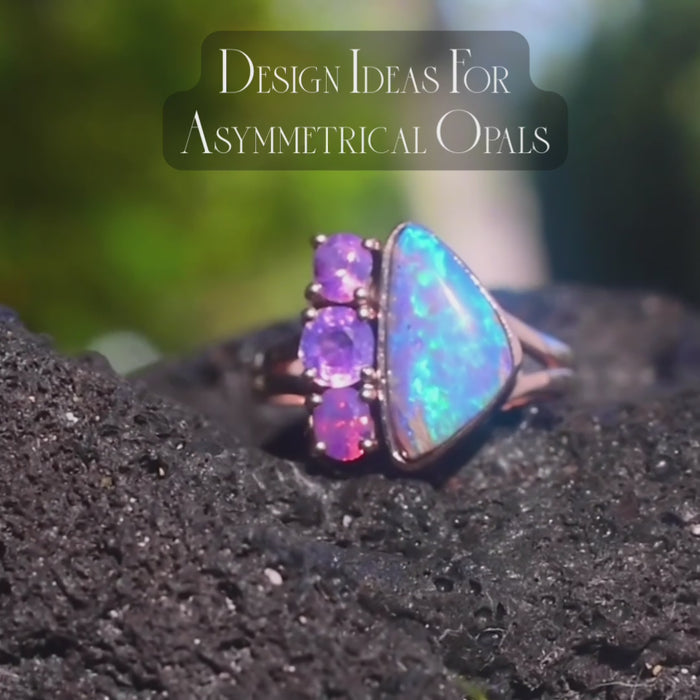 Made to Order: Stunning Huge Australian Asymmetrical Crystal Opal Ring or Pendant – Lavender with Aqua Fire, Set in 14k Yellow, White, or Rose Gold, with Custom Accent Stones of Your Choice