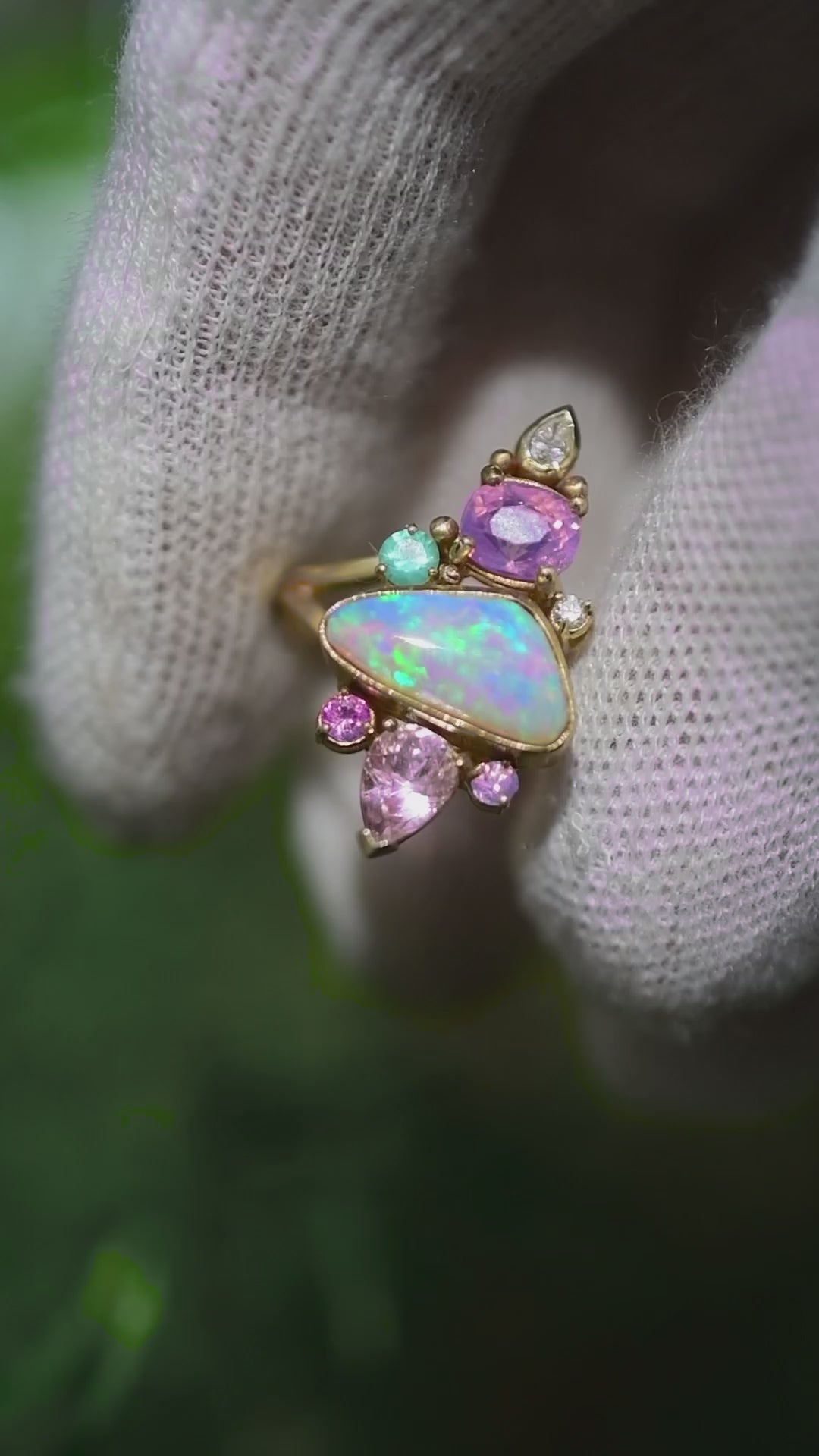 This ring is real magical and beautiful.This Opal glows with many colors.And the combination of green and blue colors of  Sapfhire Iis an amazing game of lights.The ring attracts the eyes and it is impossible to tear yourself away. I am so excited to be the owner of this treasure.Thank you Angel for perfect service.You like a fairy creating magic