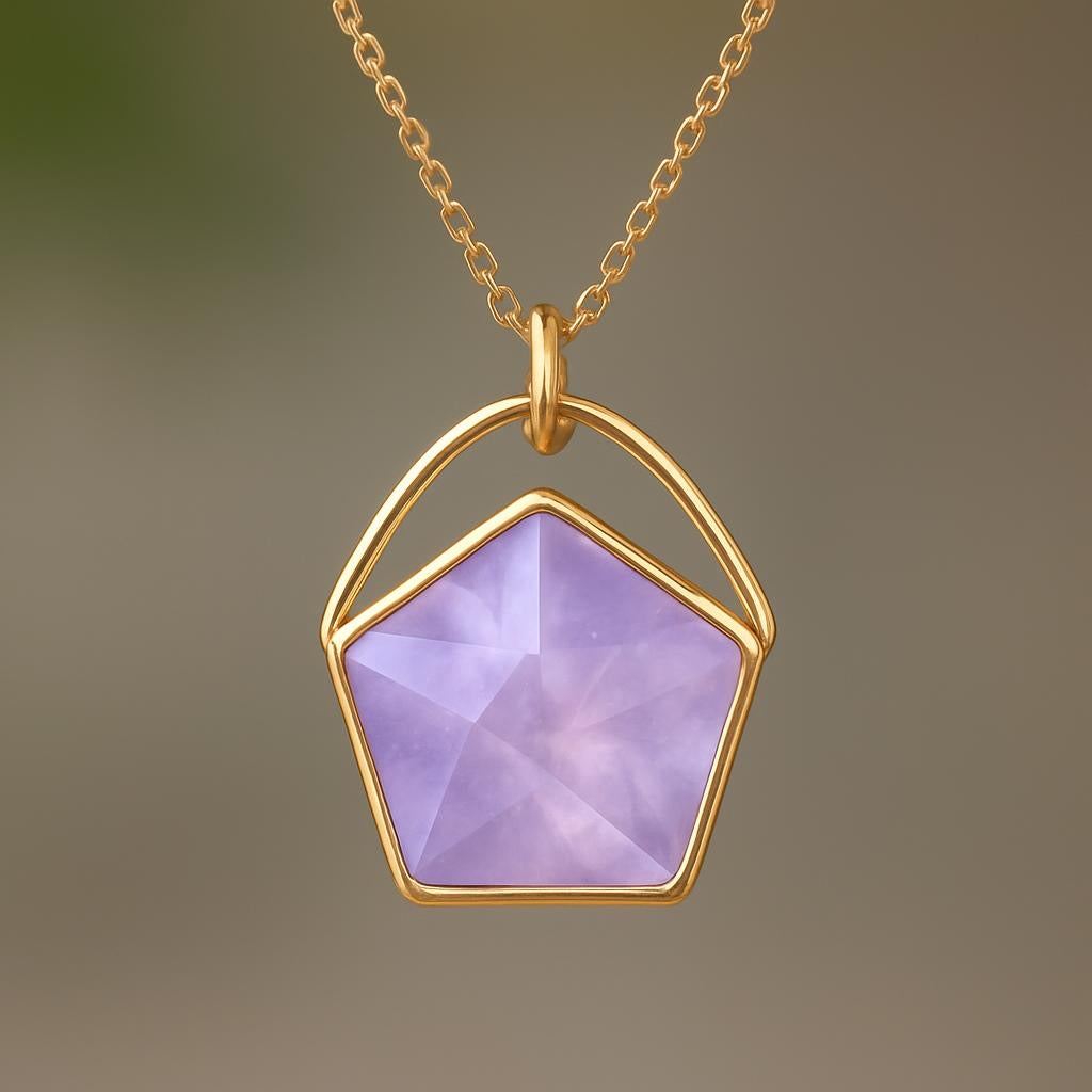 (Made to Order) Opalescent Rose Quartz Pentagon Ring or Pendant in 14k Gold 12mm